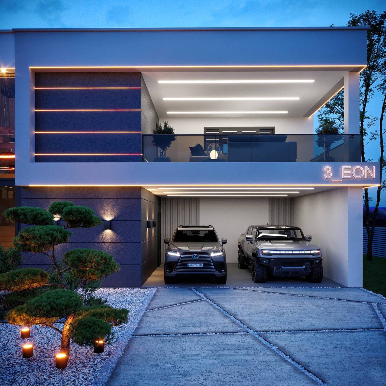🔸Оздоблення фасаду: фіброцементні плити / баранець / скло / додаткове LED освітлення