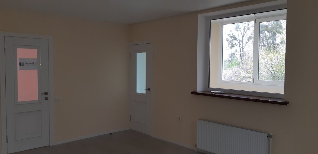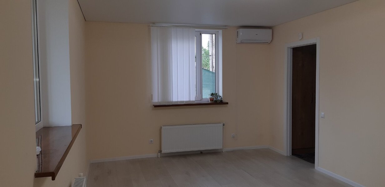 Загальна площа 142кв.м -7 кабінетів, кухня, два санвузла, балкон, тераса. Індивідуальне електроопалення, кондиціонери. Місця для парковки.