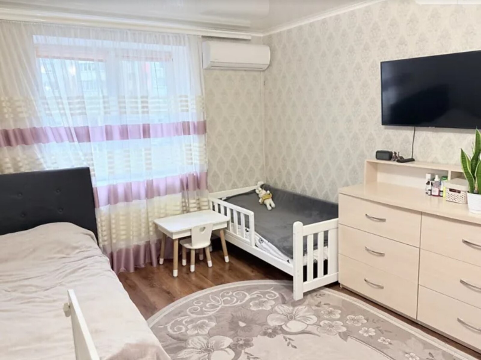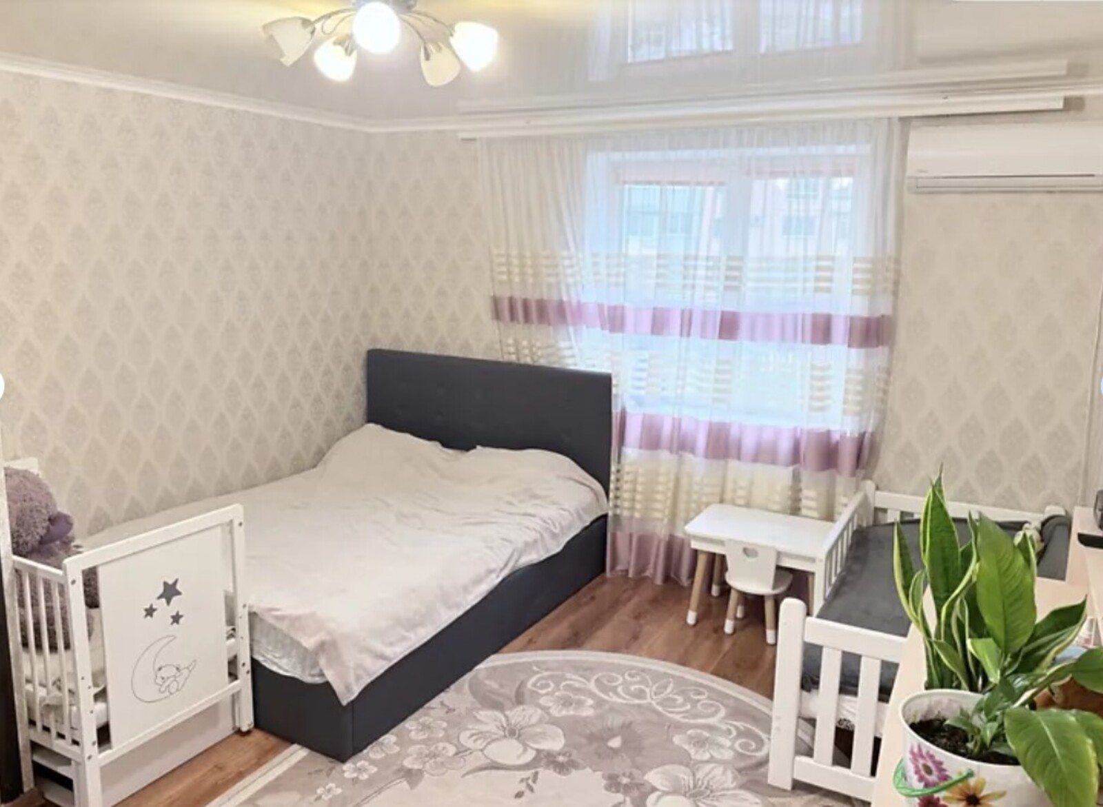 В кімнаті стоїть кондиціонер, вистачає на всю квартиру.