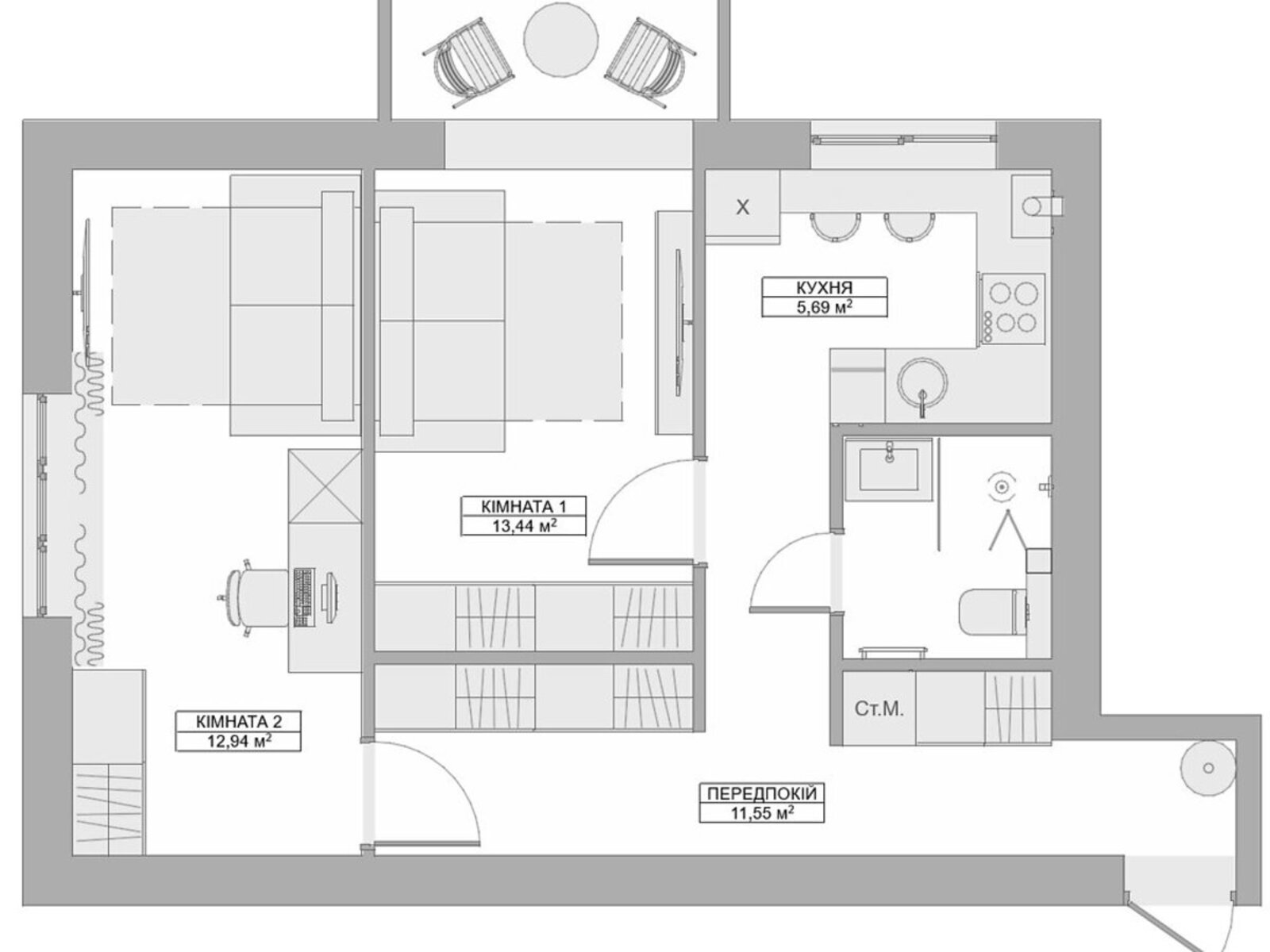 | Кімнат: | 2 |